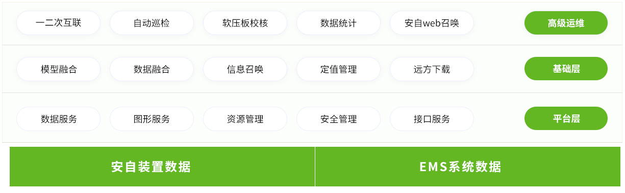 • 功能全:为用户提供对安自设备的数据采集、实时监视、远方控制、智能运维、操作流程管理等功能,确保能满足各专业人员对安自安自可观、可测、可统计等重要需求,为二次设备监控提供强有力支撑。